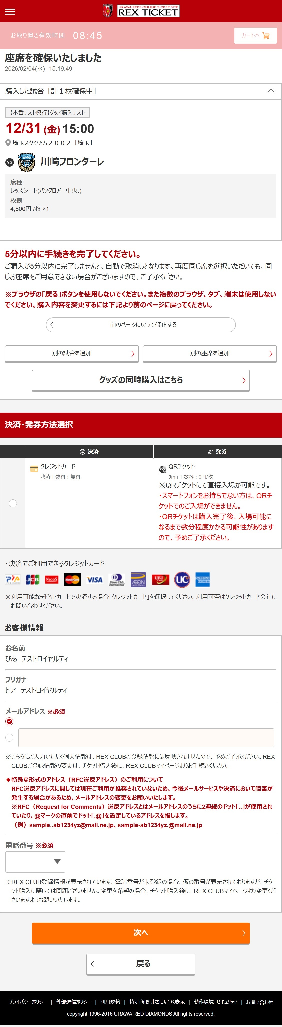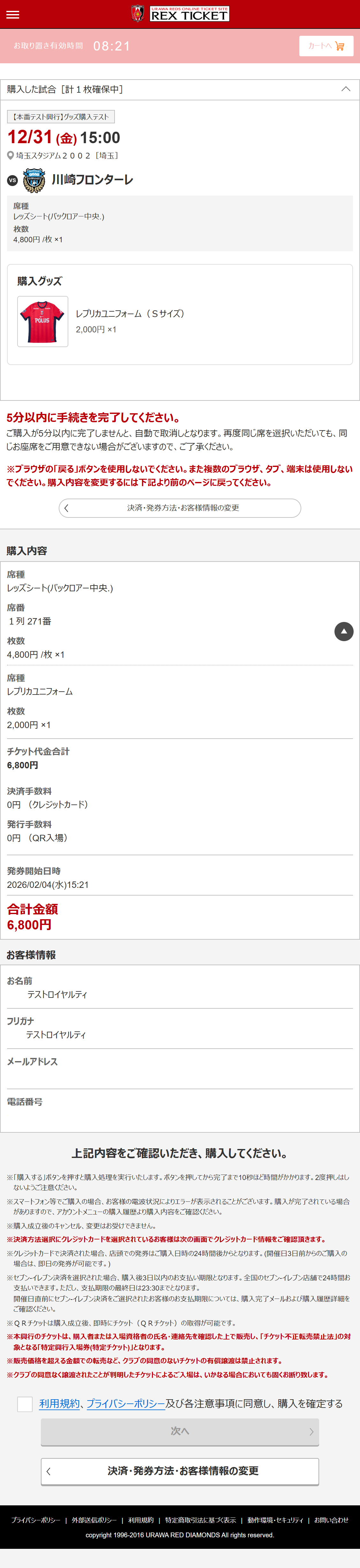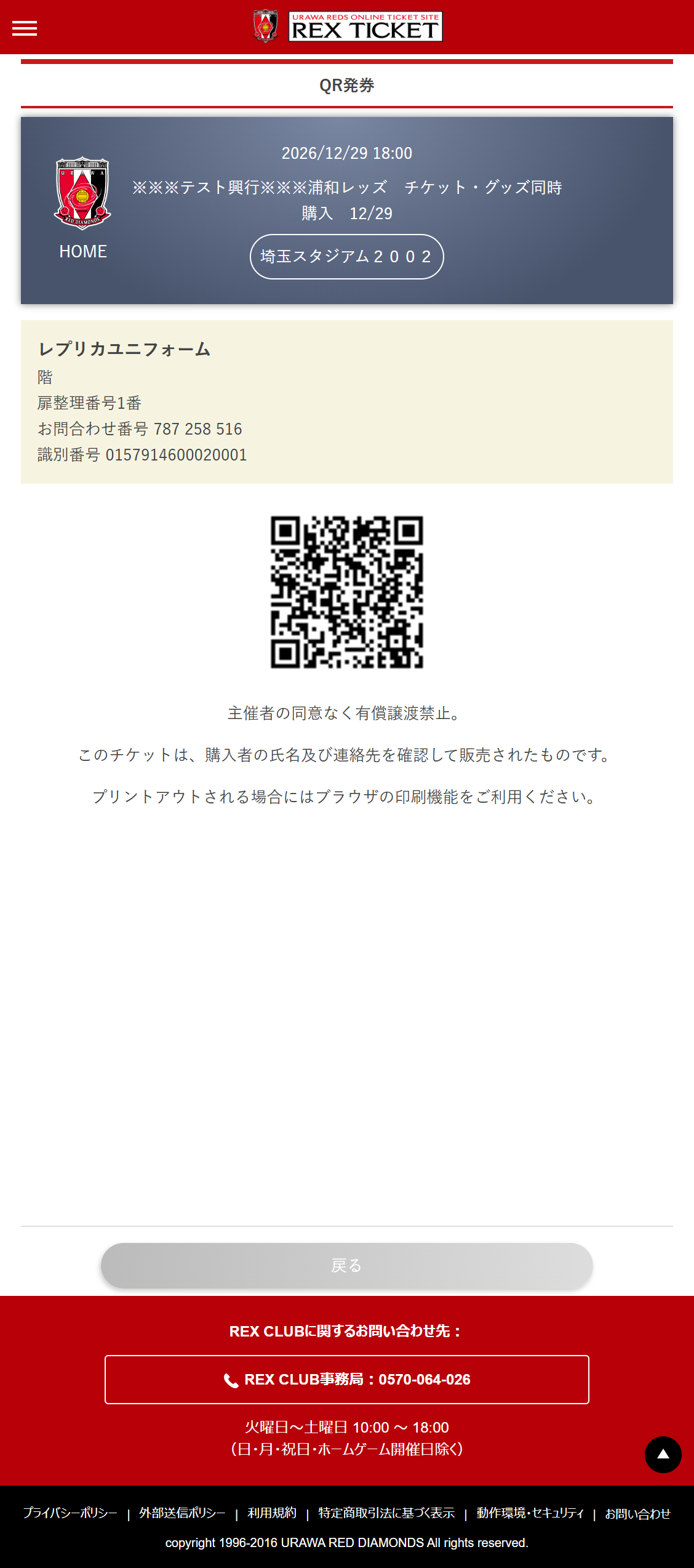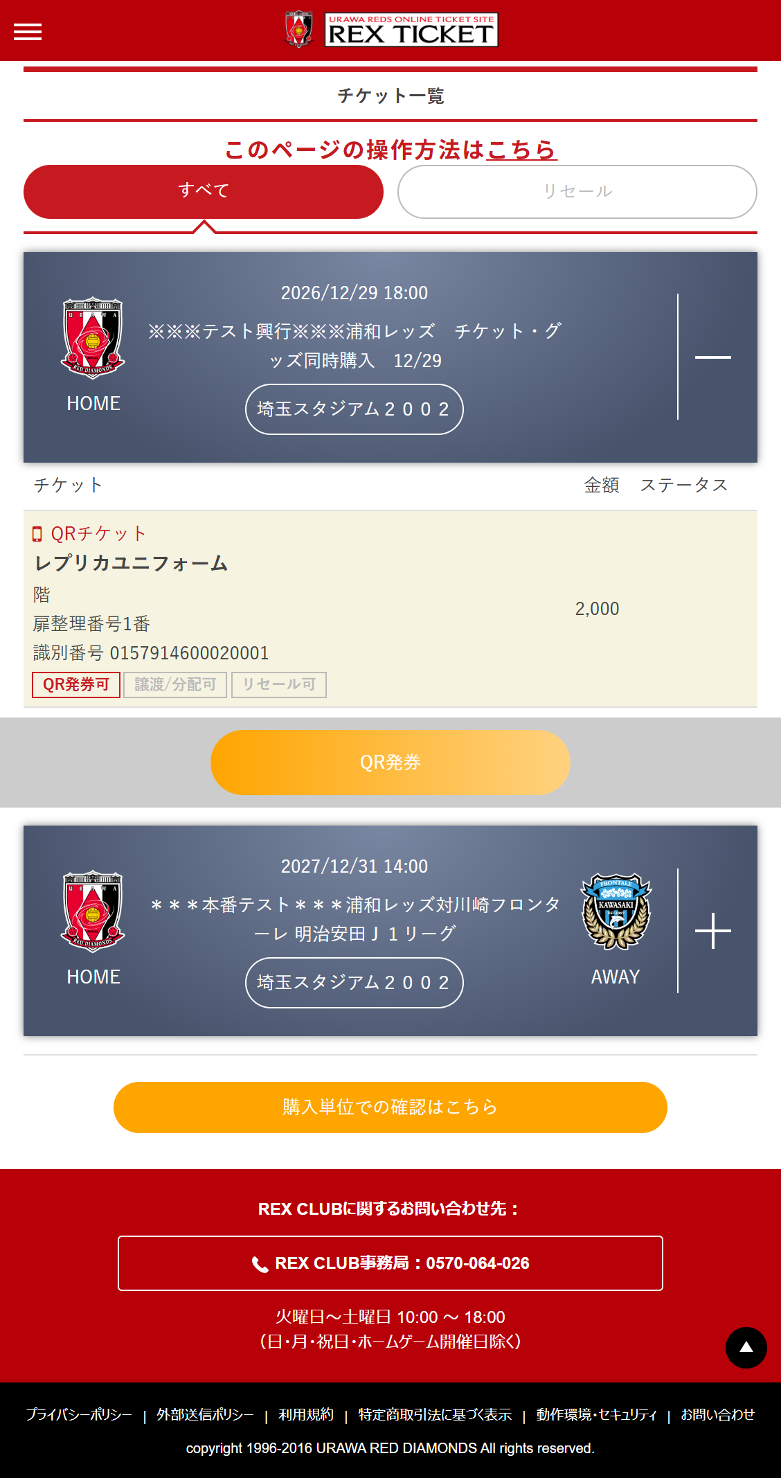 ・万が一、当日お受け取りいただけなかった場合は、次戦の埼玉スタジアム2002での試合開催日に、チケットブースにて引換いたします。